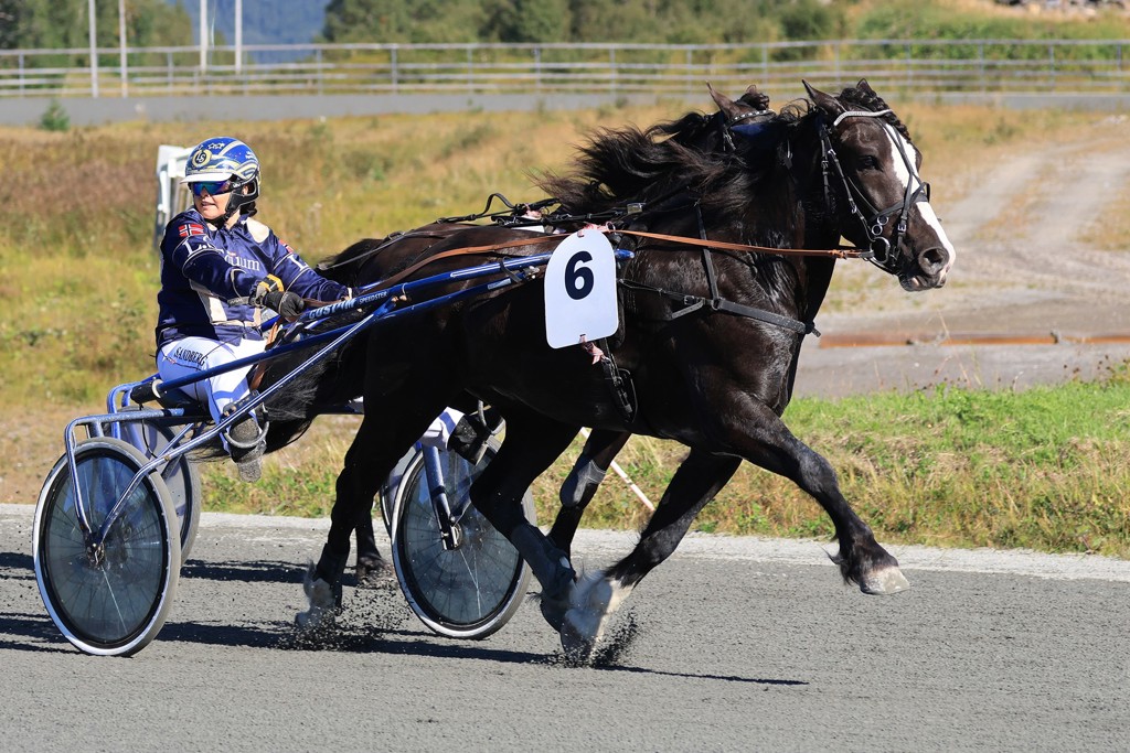 Harstads Lilly Engmark Sandberg er stadig i tetsjiktet i Veikle Balder UNG Amatør Travtrenercup. Foto Marion Klett