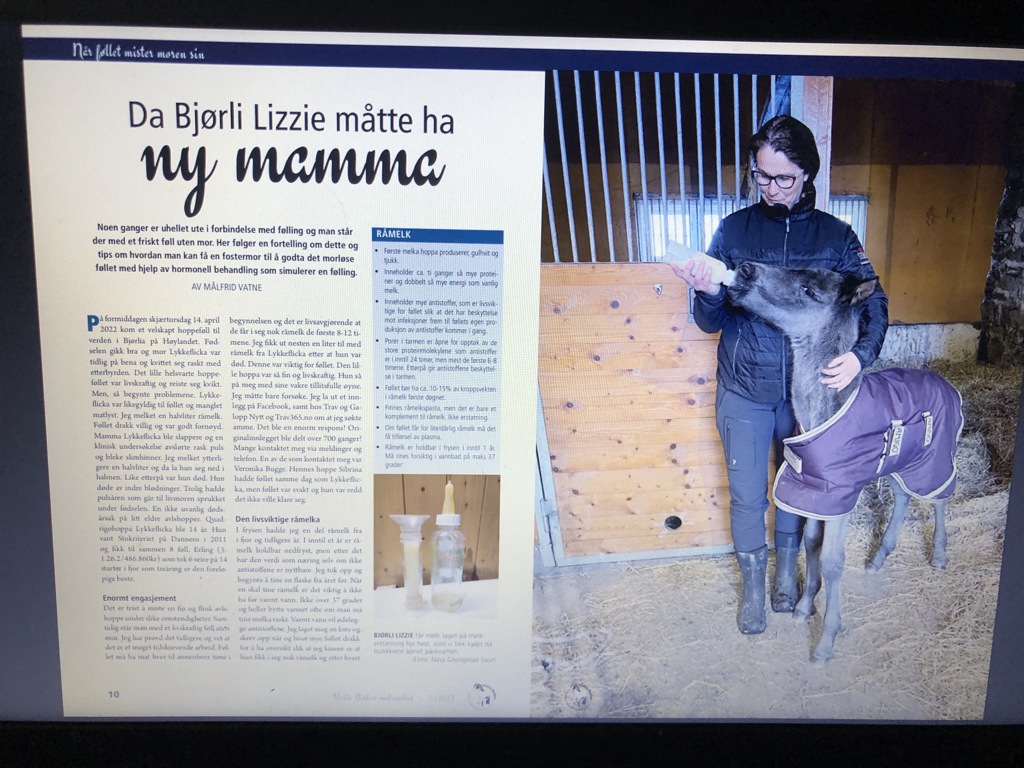 Noen ganger er uhellet ute i forbindelse med følling og man står der med et friskt føll uten mor. Målfrid Vatne deler erfaringer og tips om hvordan man kan få en fostermor til å godta det morløse føllet i artikkelen Da Bjørli Lizzie måtte ha ny mamma.